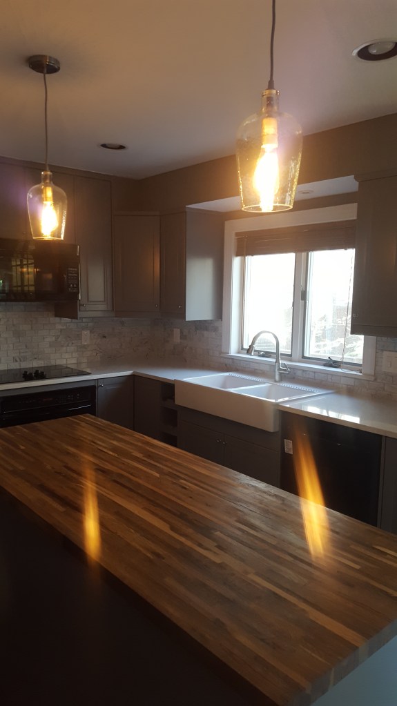 After – Pantry side of the kitchen post reno. I guess I should’ve taken my two year old’s artwork off the fridge ;p