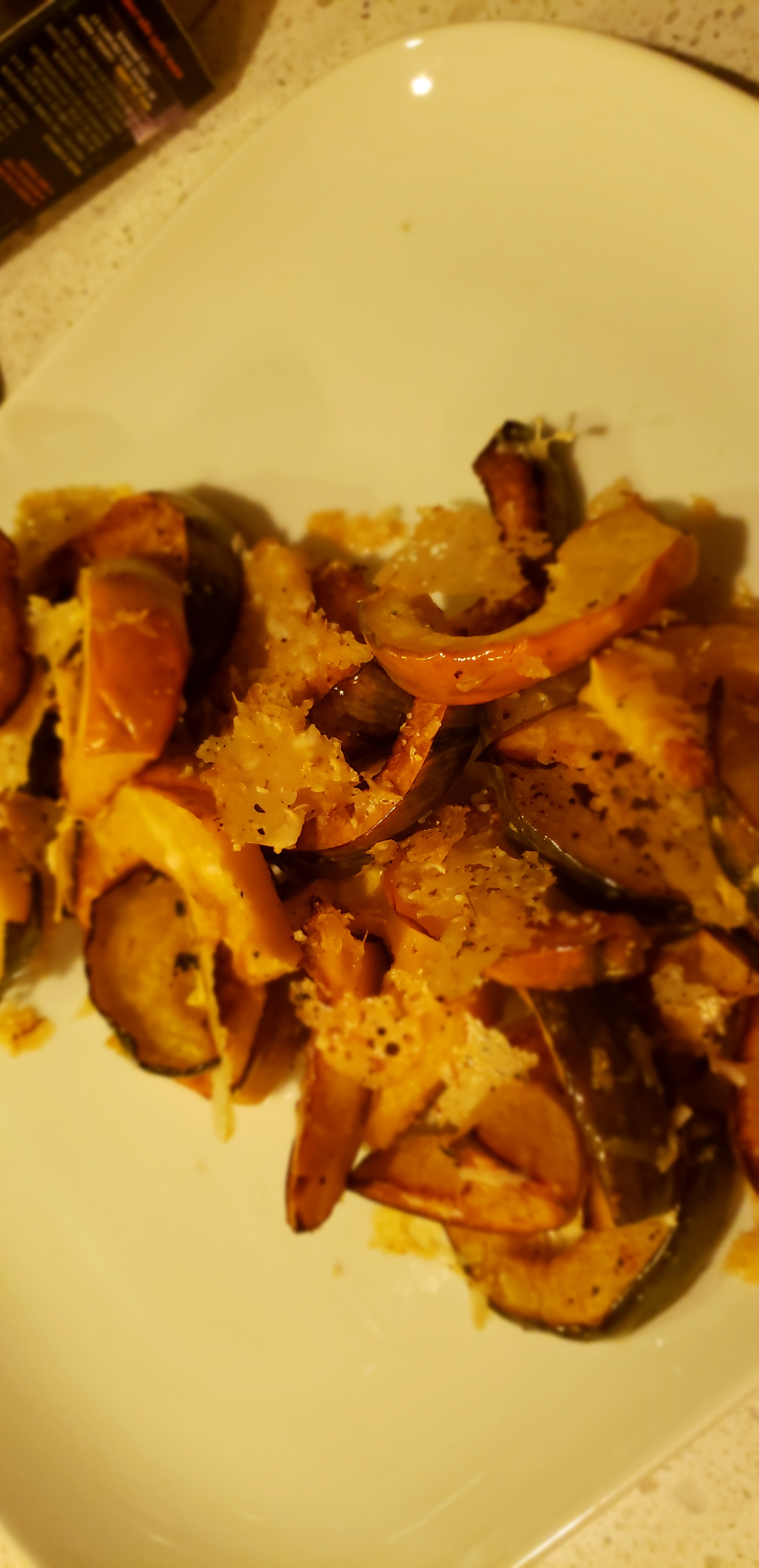 Scrape up the squash and any crispy cheese on the pan, pile into a bowl and chow.