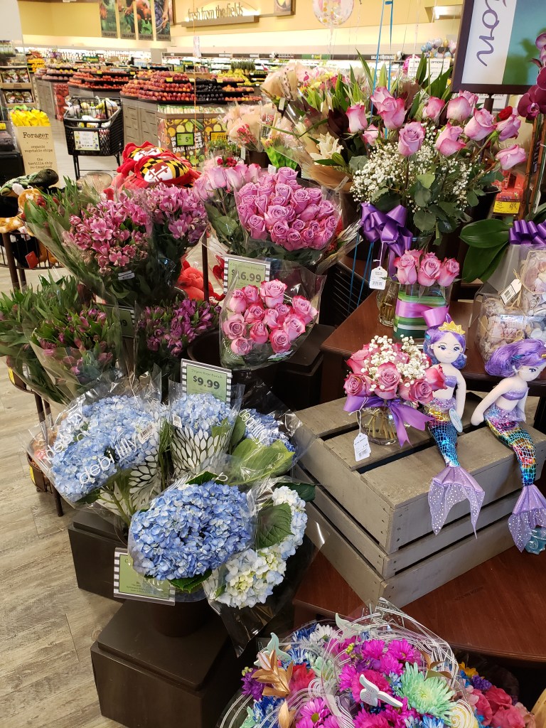 They also do really fun holiday and themed bouquets. For example, they had lovely red, white and blue pom pom bouquets for the 4th of July. And this week, they had pretty mermaid and unicorn bouquets (like the one I bought this week that’s pictured above). These would be great teamed up with the mermaid or unicorn cupcakes in the bakery section. (Full disclosure, Safeway is also my favorite bakery. I digress…)