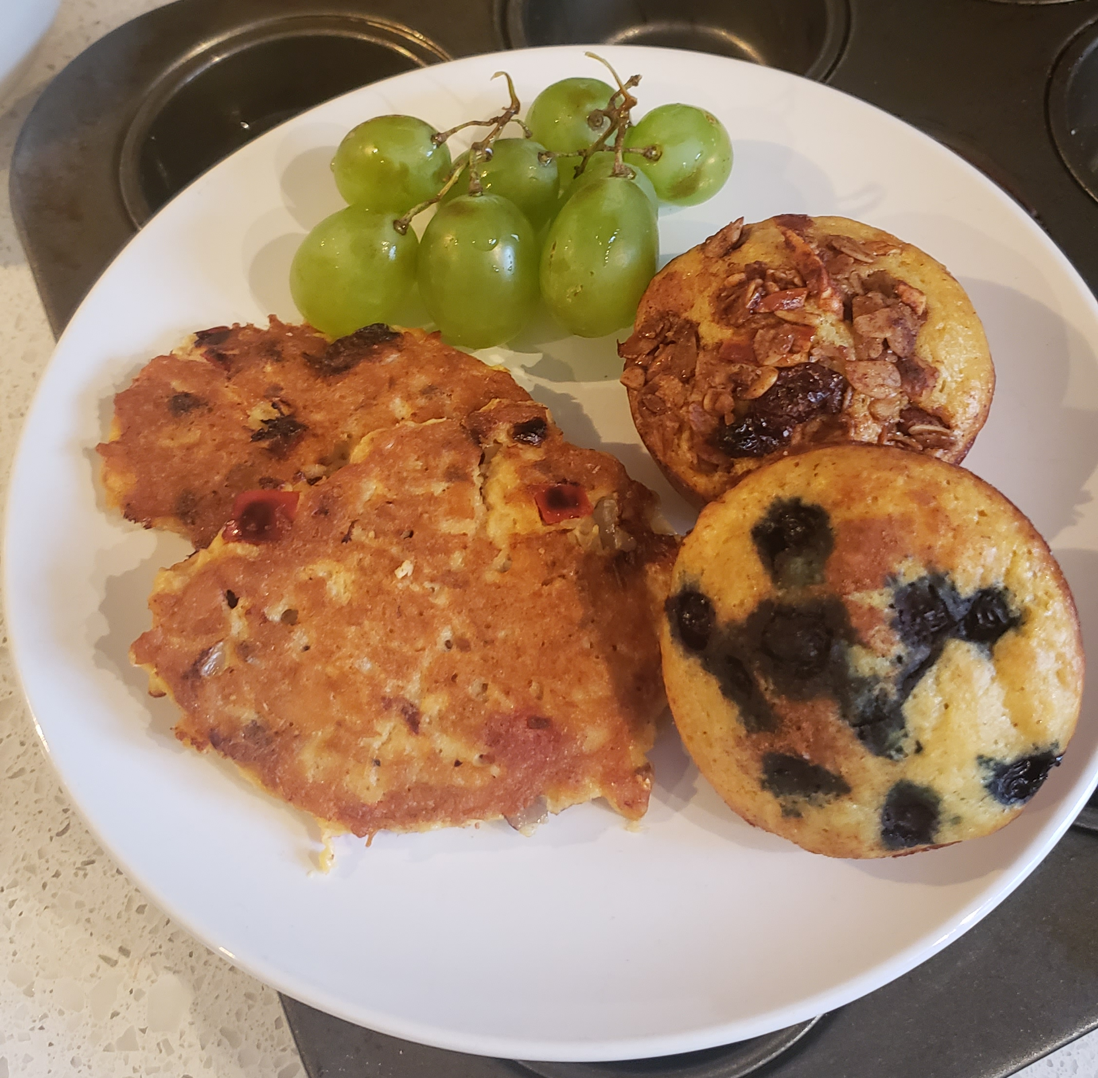 - Muffin toppings of choice (such as fresh or frozen blueberries, chopped bananas and/or nuts, granola, etc.)