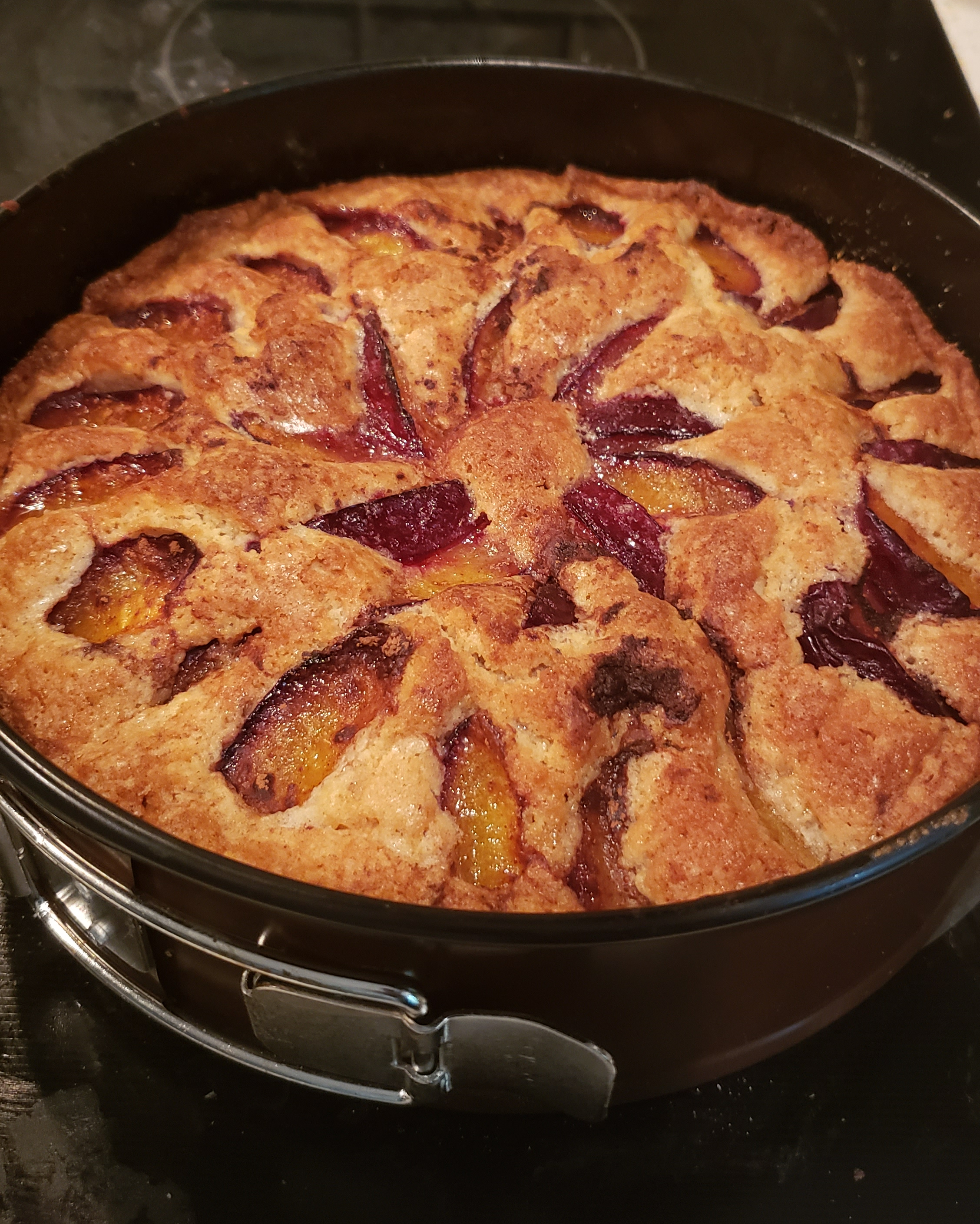 I’ve used pluots, nectarines and a combination of stone fruits (pluots, plums and cherries). You’ll see a few photos of my adventures here. Last week, I made one with white nectarines – I’d originally intended to make a plum nectarine combo, but my plums were too ripe. (So we snacked on them while we baked the cake.) That’s the beauty of this recipe. It’s versatile and works with any stone fruit you have on hand. Peaches would also be delicious.